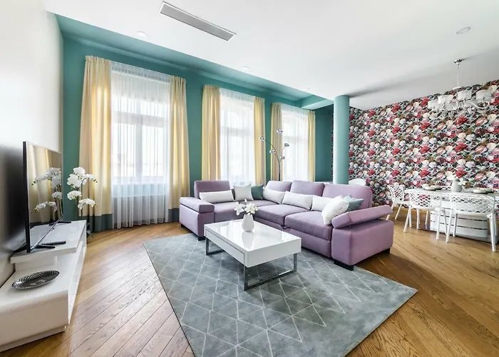 Ubicado más o menos a 10 minutos en coche del Museo Letón de la Guerra, Sky Apartments Riga cuenta con una cocina para aquellos que quieren cocinar por su cuenta. La Ópera Nacional de Letonia está a unos 25 minutos a pie de este apartamento, mientras que la estación de autobuses las Pernavas iela está a un par de minutos de la propiedad.